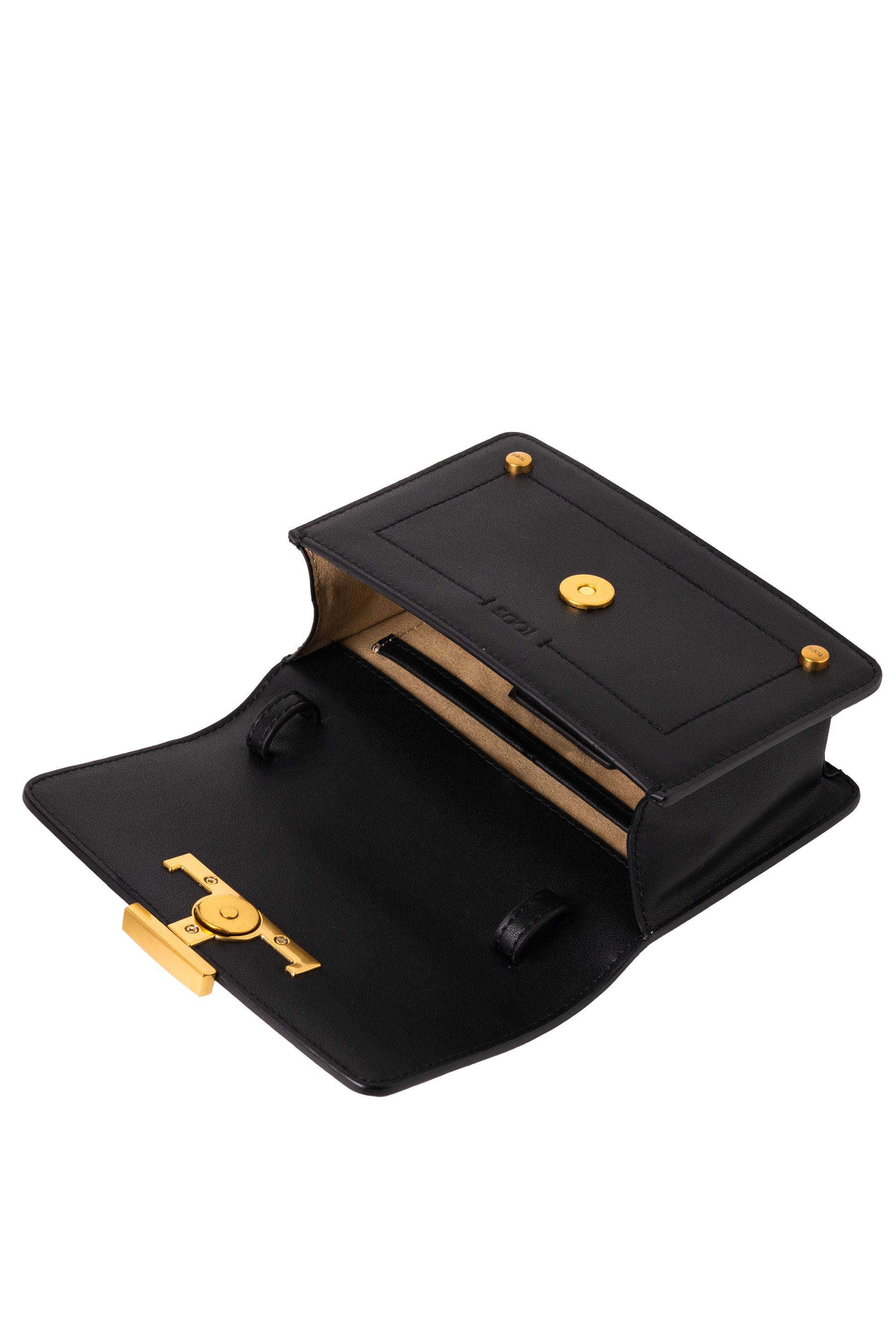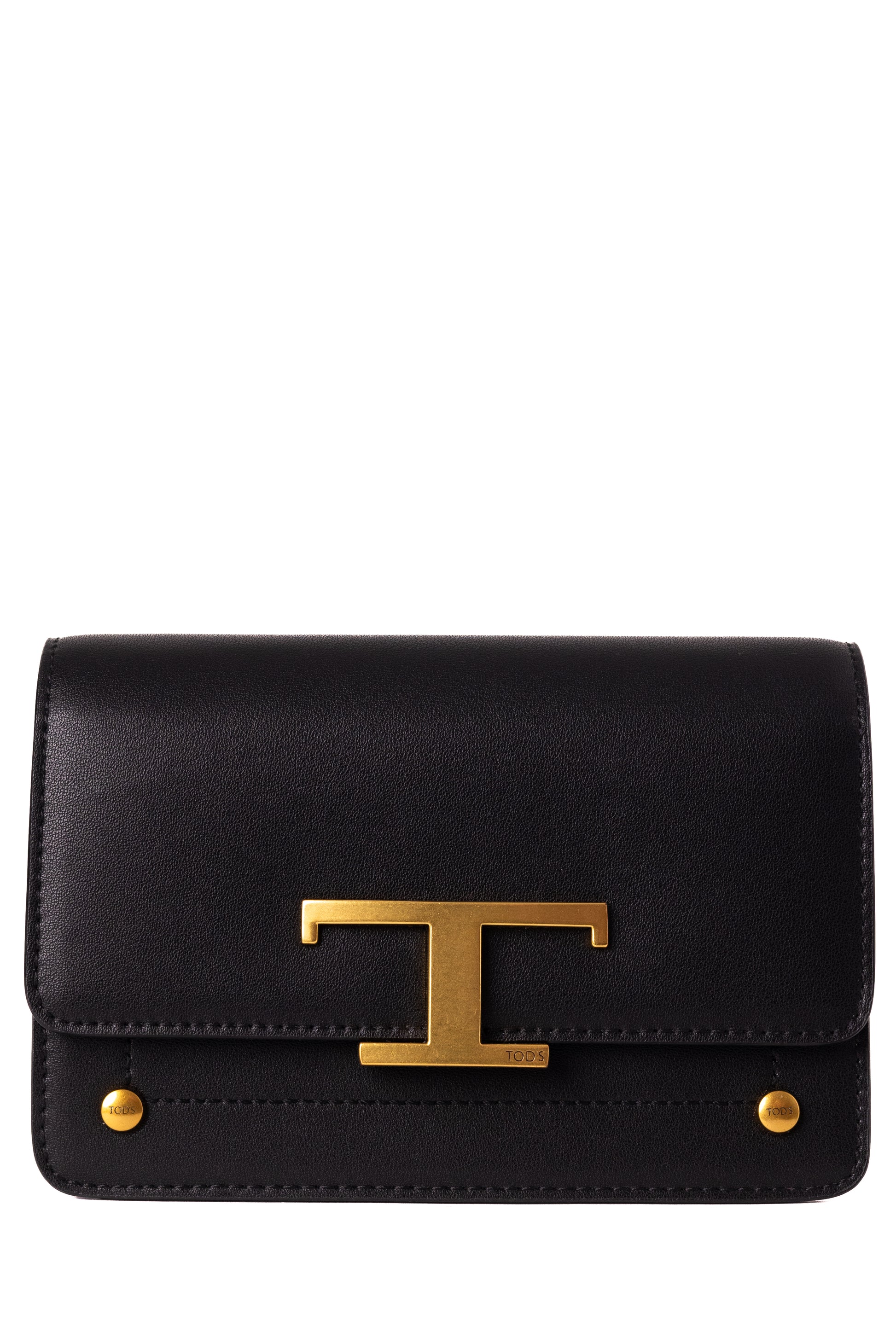 The TOD's T Timeless Black Bag a versatile accessory suited for those seeking a blend of artisanal and contemporary style. Carefully crafted from soft full grain leather and adorned with branded metal T Timeless accessory and rivets, this bag is designed with an exchangeable handle and shoulder strap and features a magnetic closure as well as a two-compartment interior. Its formal and professional appearance is sure to elevate any ensemble.